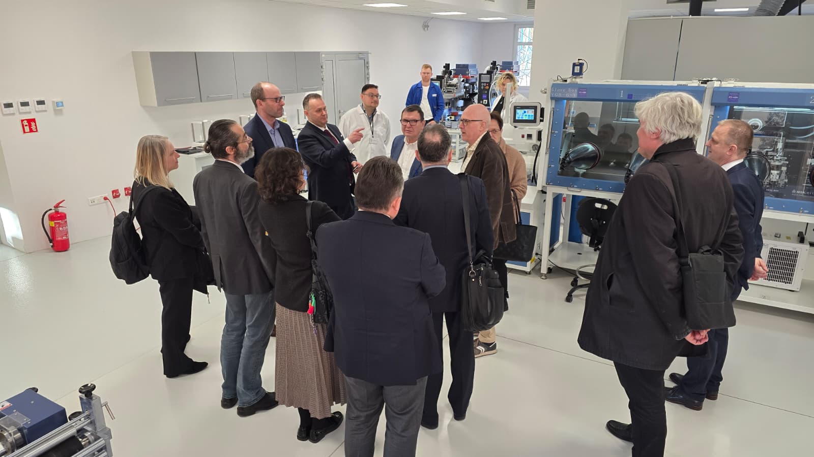 Uczestnicy spotkania mieli również możliwość zapoznania się z infrastrukturą badawczą Instytutu. W trakcie wizyty w Laboratorium Badań Chemicznych Źródeł Prądu oraz w nowym Laboratorium do prototypowania ogniw litowo-jonowych zaprezentowano możliwości w zakresie testowania, analizy materiałowej oraz wytwarzania prototypowych ogniw.